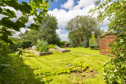Outside at the rear, a paved terrace, perfect for alfresco dining, sits behind the house with paved steps leading up to a further paved terrace and the beautiful south facing garden with outstanding views. It is laid mainly to lawn with a pretty mix of mature stocked beds, trees, plants and flowers. There is a summer house and a wooden shed, and a bike shed to cater for all your storage needs and garden equipment. At the rear is a vegetable garden with raised brick enclosed beds. The garden is fully enclosed and secure with perimeter high mature hedging and shrubs and close boarded fencing, making it ideal for kids and pets.