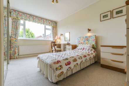 Climbing the stairs to the first floor, there are three bright and generously sized bedrooms. The two larger bedrooms have fitted wardrobes and garden views with the third enjoying far reaching views to the front.