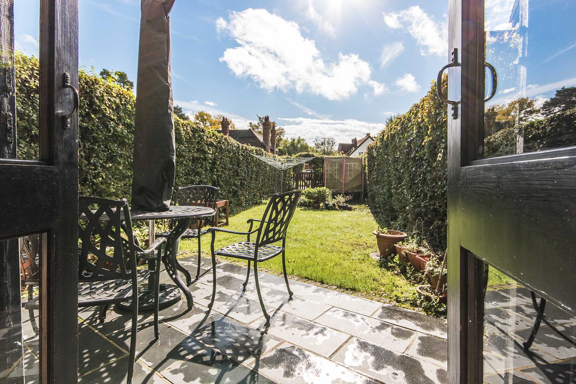 Outside to the rear its garden is laid mainly to lawn with high perimeter hedging providing privacy and a safely contained sanctuary for pets and children. A paved terrace sits at the back of the house giving plenty of space for alfresco dining while a back gate leads your visitors in from their parking area.