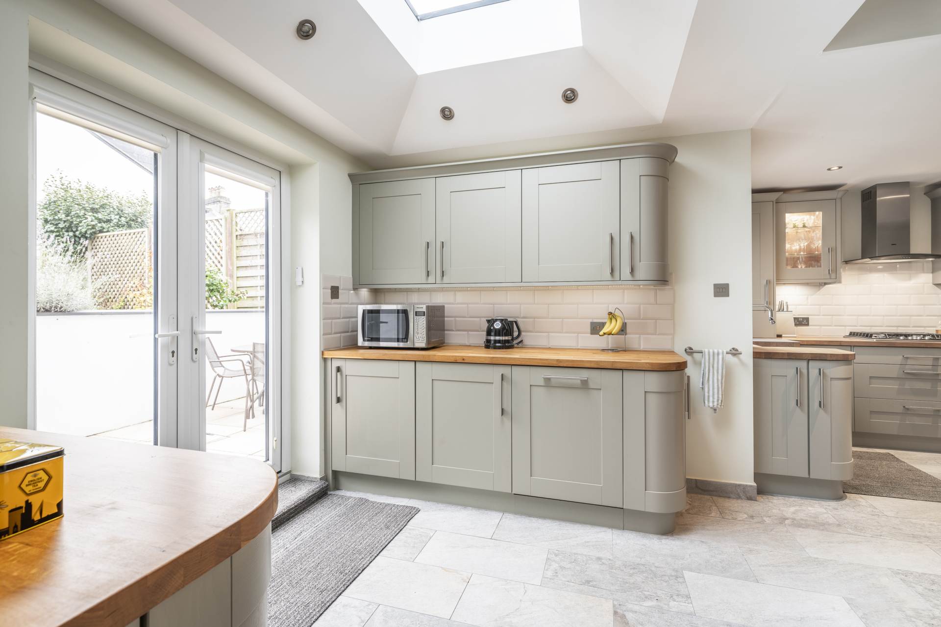 Behind is the family/dining room. Given its proximity to the kitchen, it makes the perfect dining area, but it also benefits from enough space for family sofas, with another set of French doors opening to a small courtyard. There is access into a shower room with cloakroom facilities for guests.
